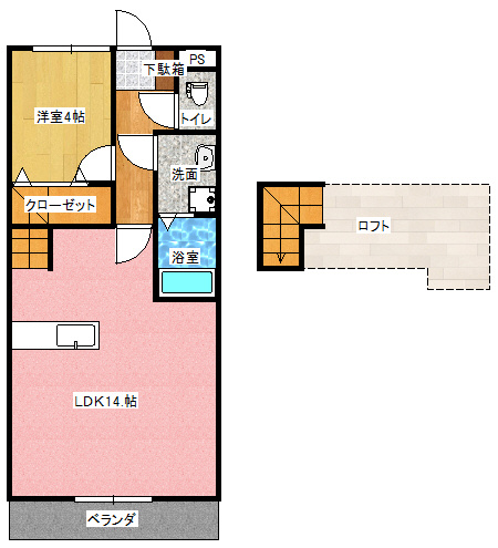 | 備考 | 広々ロフト(約6帖)があり、使い方いろいろ!。自治会費600円/月。1階角部屋! | ||